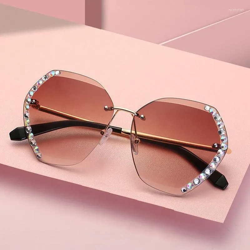 Most Evaluation Sunglasses Fashion Rimless Oversized Woman Brand Diamond Shades Gradient Sun Glasses For Female Frameless Polygon Designersunglasses Click4vector Com